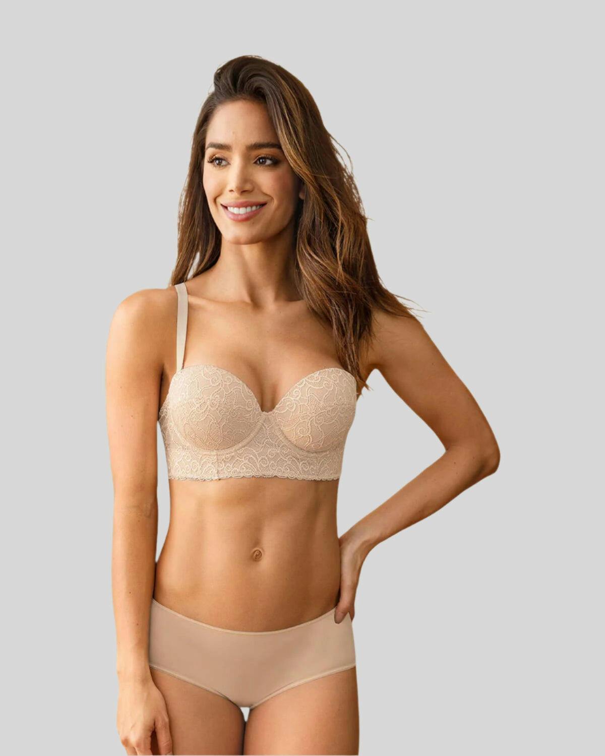 - Cargaderas removibles para uso convencional, cruzado, halter o strapless.